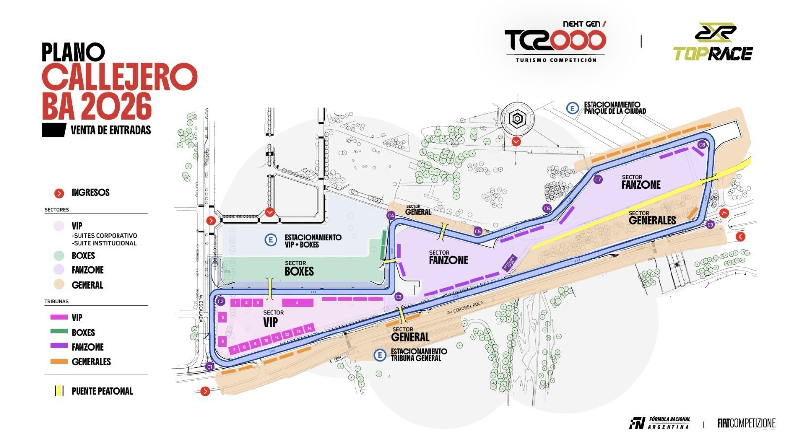 El evento contará con un sector VIP y un Fan Zone con propuestas recreativas. También se montará un sector de boxes, un paddock dentro del Parque de la Ciudad y habrá estacionamientos junto a los ingresos generales y para el VIP. Las entradas se pueden comprar en ticketek.com.ar y en tc2000.com.ar.