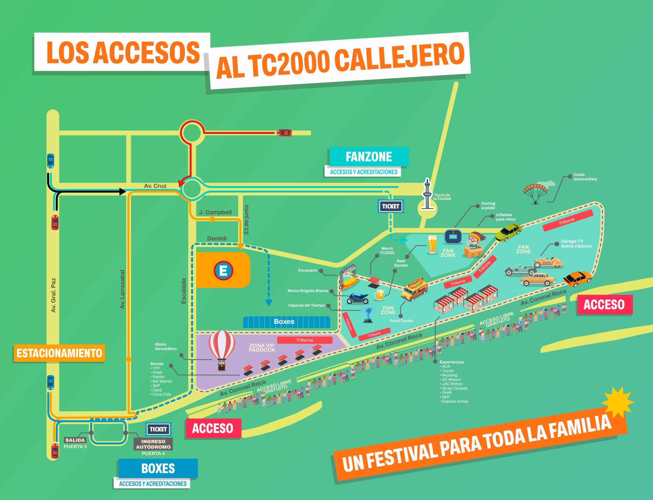 ▪️Sector B (Paddock Suite y VIP): desde J. Campbell, seguir por la calle 23 de Junio. El acceso se encuentra a 300 metros.